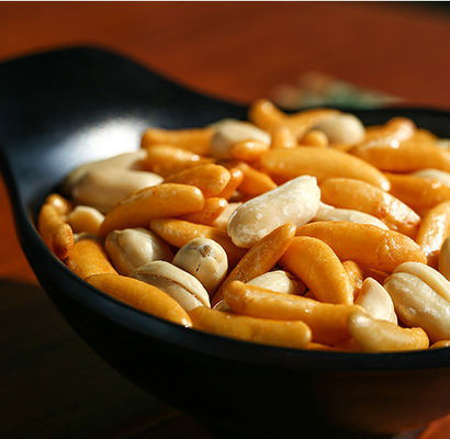 Japońska przekąska Krakersy ryżowe w kształcie nasion persymony z orzeszkami ziemnymi Zdrowa przekąska orzechowa do baru